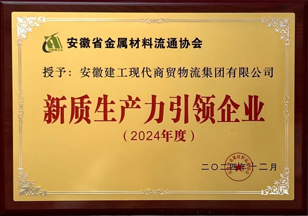 12月31日,安徽省金屬材料流通協(xié)會2024年度三屆六次理事會在合肥成功舉辦,會議以“向上而生 順勢而為 共啟新程”為主題。會上,建工商貿(mào)物流榮獲2024年度新質(zhì)生產(chǎn)力引領(lǐng)企業(yè)。